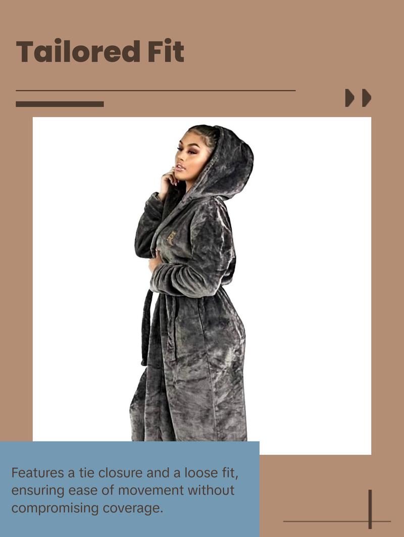 Indulge in luxurious comfort with the Grey Hooded Royalty Robe for women, perfect for lounging in style.