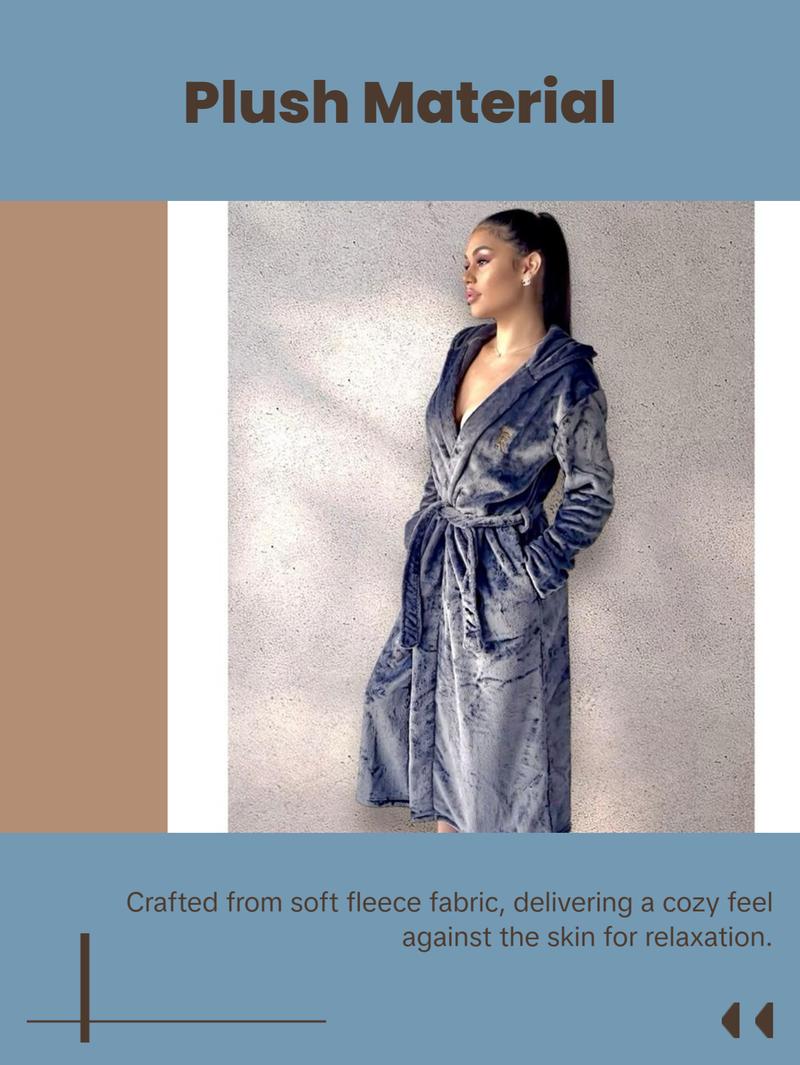 - Hood and Pockets: Featuring a hood and convenient pockets, this robe combines style with functionality.