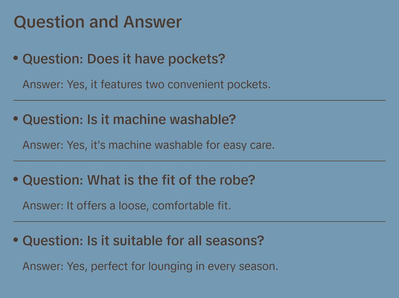 - Great Gift Idea: Treat yourself or a loved one to this elegant loungewear piece that is perfect for all seasons.